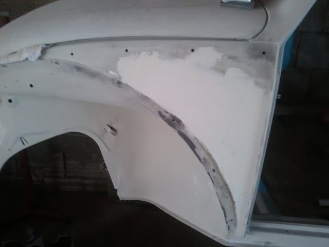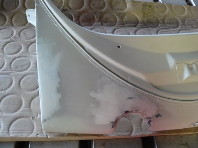 Hier zie je hoe ik met glasvezelplamuur in de weer ben geweest.