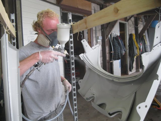 Het achterpaneel, rechter achterspatbord en de treeplanken kunnen zich vanaf nu de trotse eigenaar noemen van een verse laag grondverf en filler.